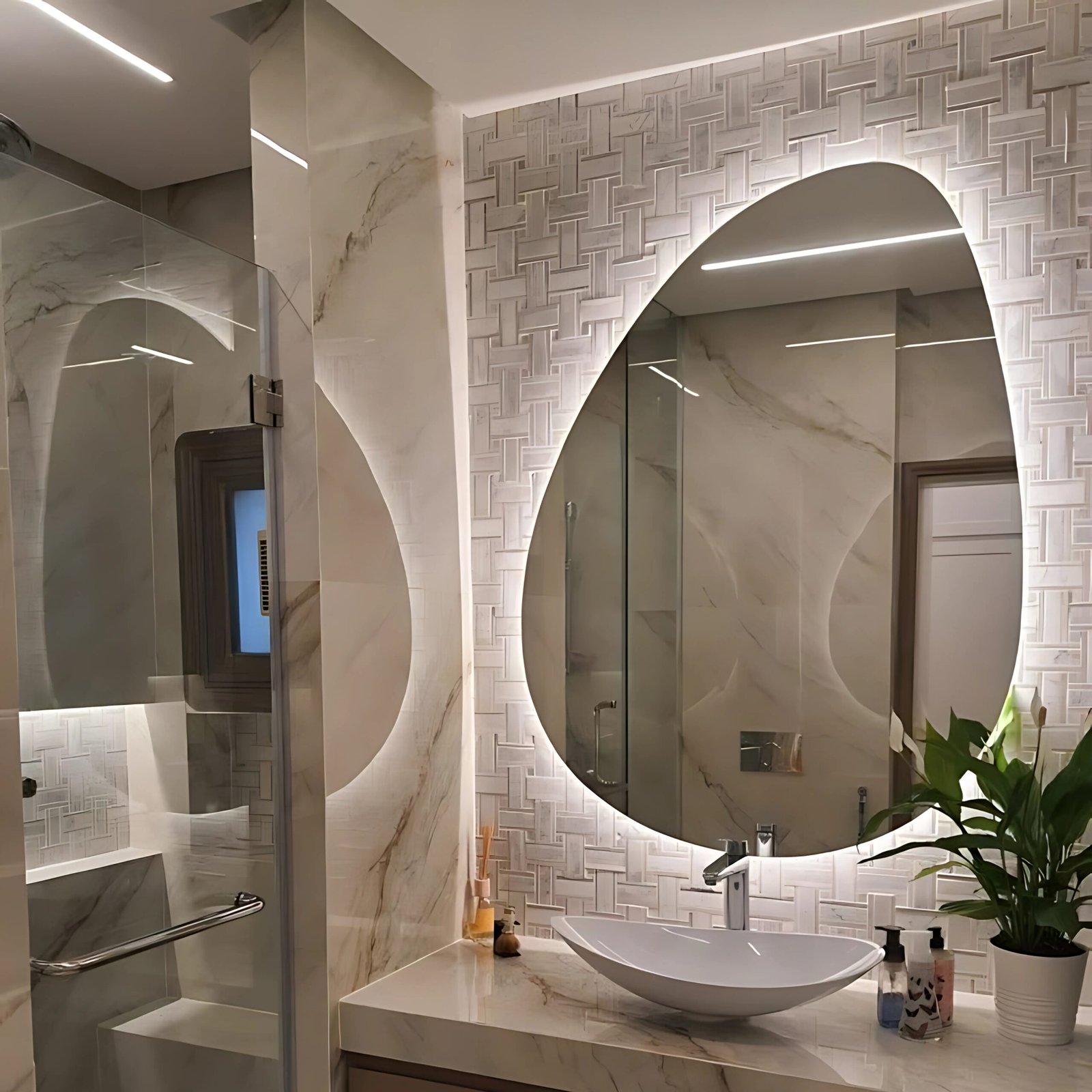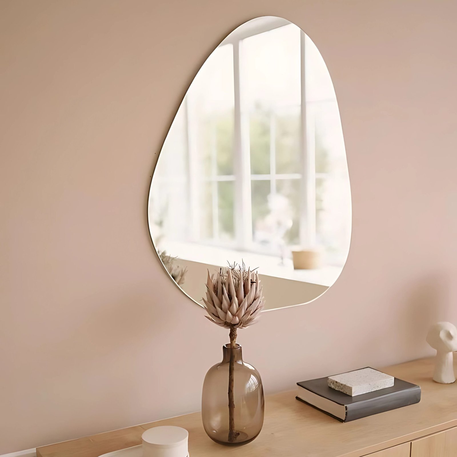 Espejo Mirage 70×40 cm con acabado pulido, ideal para dar un toque moderno y sofisticado a tu baño o tocador. Su forma orgánica y elegante resalta con cualquier revestimiento, aportando amplitud, luz y estilo único al ambiente.